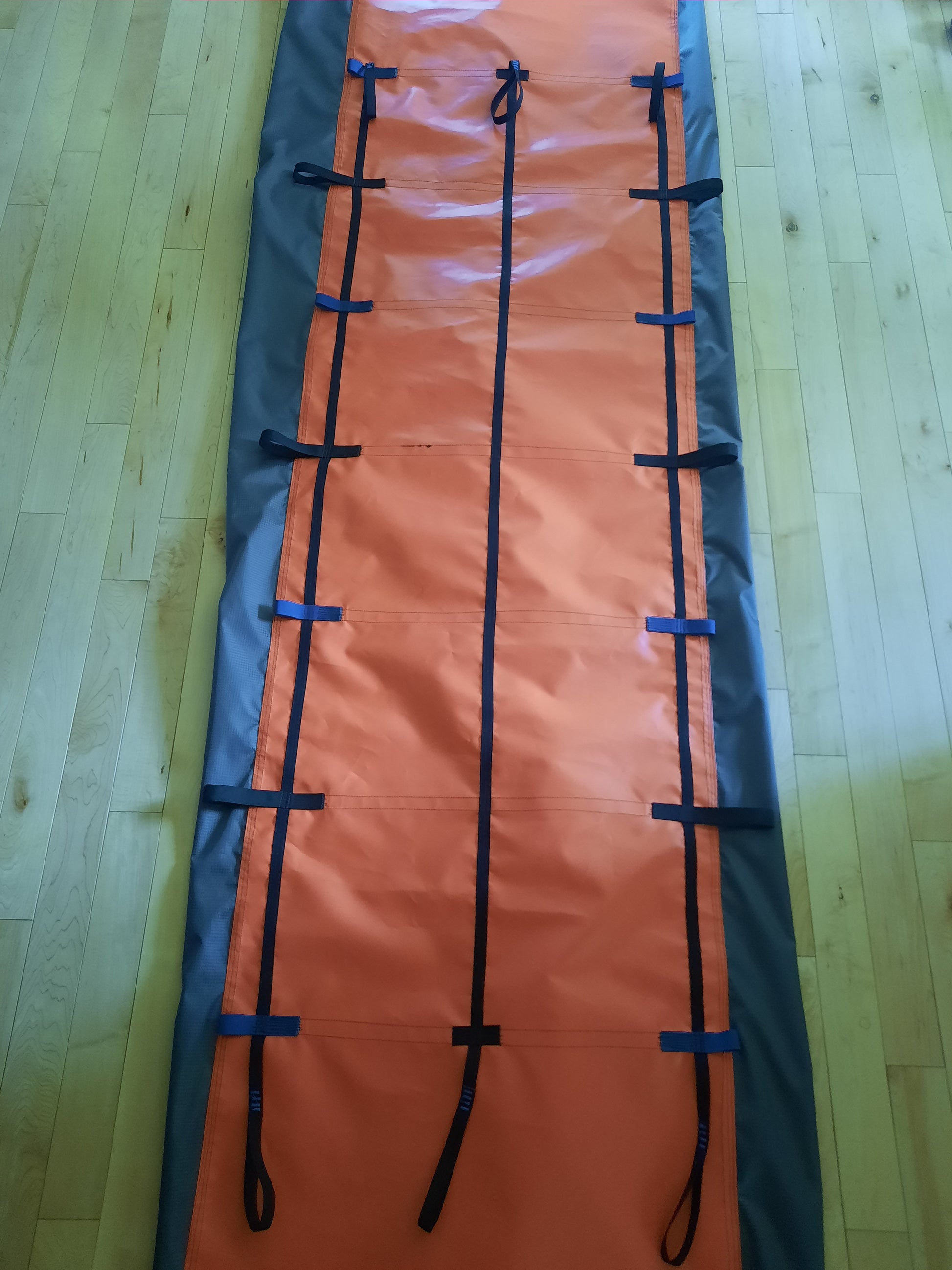 An industrial, beefy version of the Ski Guides Rescue tarp. Exact same design as the SGRT, except with far more durable fabric & wider webbing making it great for SAR teams, heli/cat skiing, touring lodges' rescue caches, first aid/instructional groups etc.